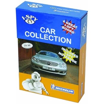 The I-Spy cars box set comes in a smart fliptop box with magnetic closure and includes: -I-Spy Cars -I-Spy Classic Cars -I-Spy Car Badges -I-Spy Every Vehicle on the Road -I-Spy Notebook -I-Spy Collector Card